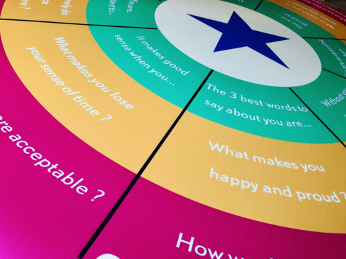 • The Team Coaching Carpet, bordmodel med brugsklare coaching spørgsmål, anerkendelse og lær-at-kende tekster.