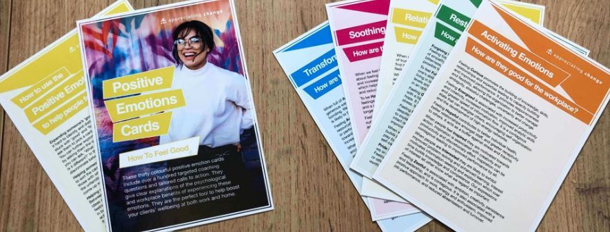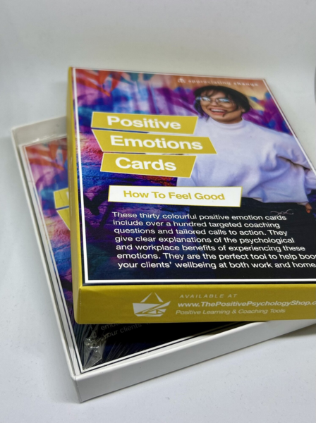 Tredive positive følelser lige ved hånden, fulde af måder at øge velvære på. Alle kort med ca. 230 coaching spørgsmål er formuleret på engelsk.